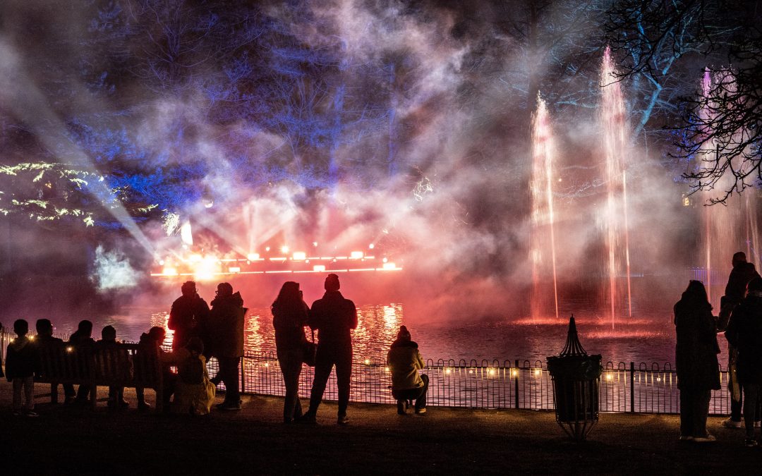 In the Pump Room Gardens, crowds were left enchanted by the bandstand illuminated by LAMP Leamington, which showed the park in the new light. Meanwhile, in Jephson Gardens, the dazzling spinning disco ball heart by Jephson’s Clock Tower was a highlight. This sparkling feature will take centre stage once again during the Silent Disco events on Friday and Saturday nights, promising even more unforgettable moments.