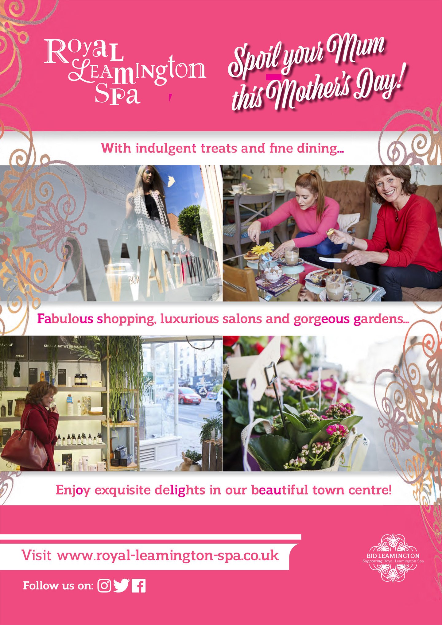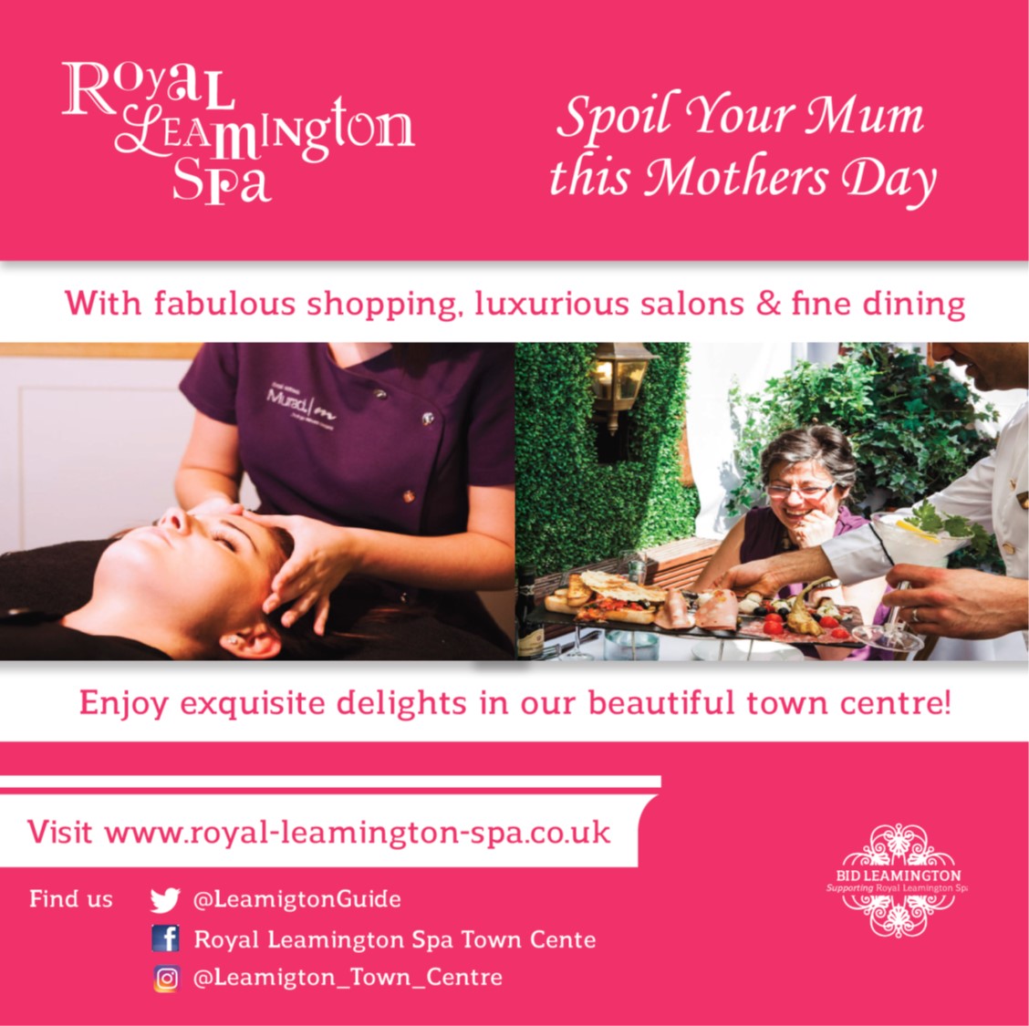 Throughout the year BID Leamington organises and implements a range of customer-focused campaigns to promote the town and its offering. We enjoy developing creative campaigns around key dates, events and opportunities such as Christmas, school holidays, and welcoming students returning to university accommodation. We also enjoy shining a light on our businesses for international women’s day, small business Saturday, and independents day.